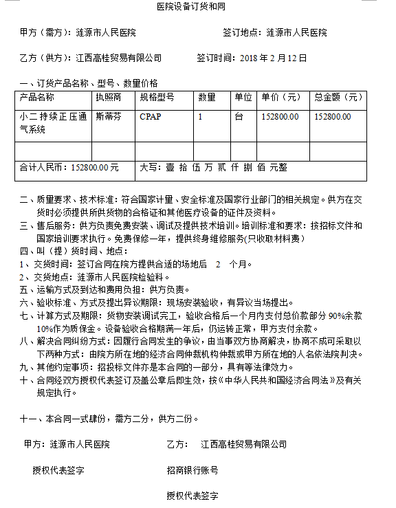 漣源市人民醫(yī)院小兒專用無創(chuàng)呼吸機(jī)采購(gòu)合同