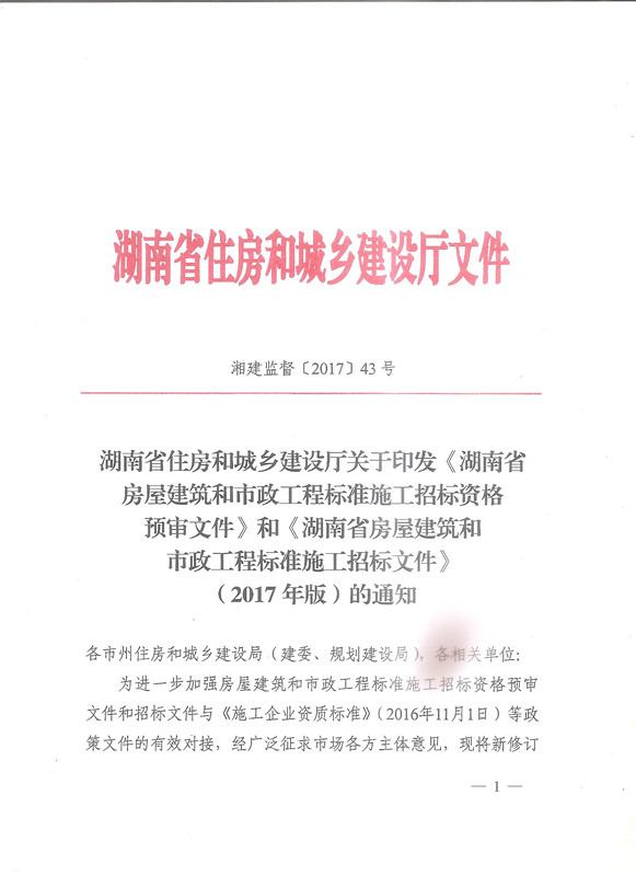 湖南省住房和城鄉(xiāng)建設廳關于印發(fā)《湖南省房屋建筑和市政工程標準施工招標資格預審文件》和《湖南省房屋建筑和市政工程標準施工招標文件》通知湘建監(jiān)督〔2017〕43號.rar