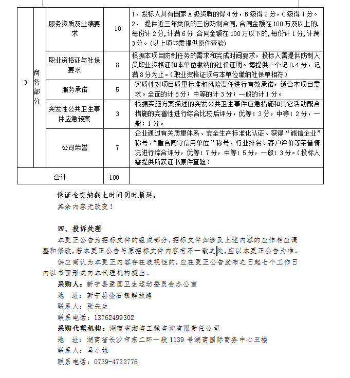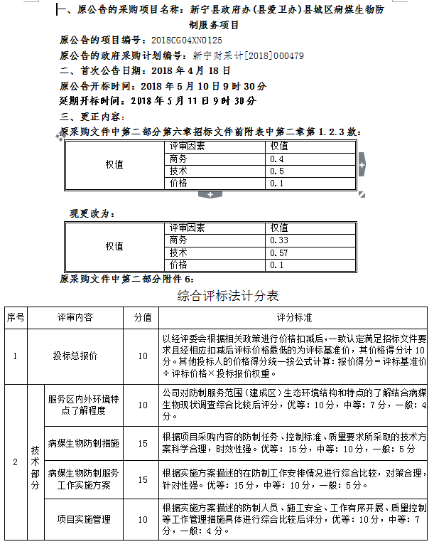新寧縣政府辦(縣愛衛(wèi)辦)縣城區(qū)病媒生物防制服務(wù)項(xiàng)目     公開招標(biāo)更正公告(二)