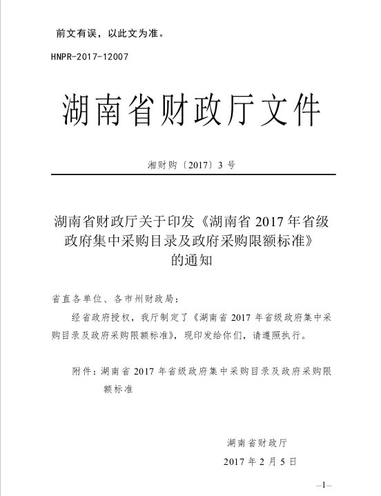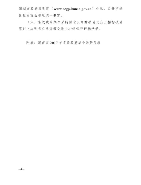 湖南省財(cái)政廳關(guān)于印發(fā)《湖南省2017年省級(jí)政府集中采購(gòu)目錄以及政府采購(gòu)限額標(biāo)準(zhǔn)》的通知
