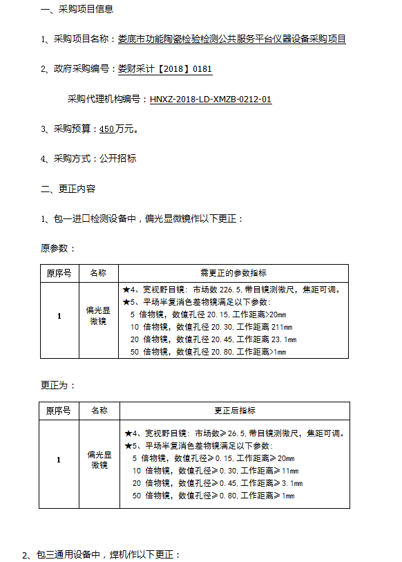 婁底市功能陶瓷檢驗(yàn)檢測(cè)公共服務(wù)平臺(tái)儀器設(shè)備采購(gòu)更正公告