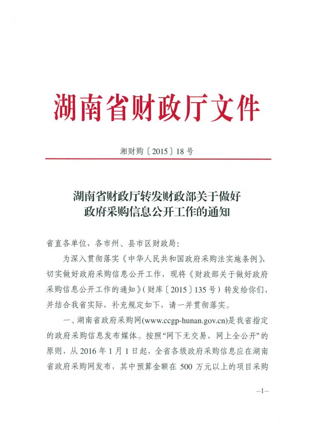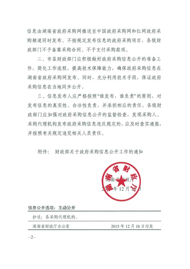湖南省財(cái)政廳轉(zhuǎn)發(fā)財(cái)政部關(guān)于做好政府采購信息公開工作的通知