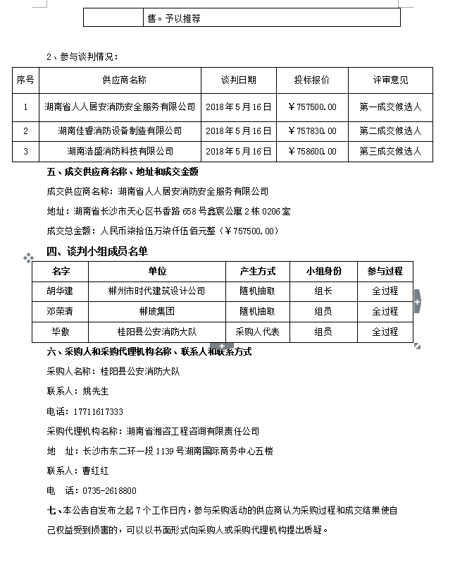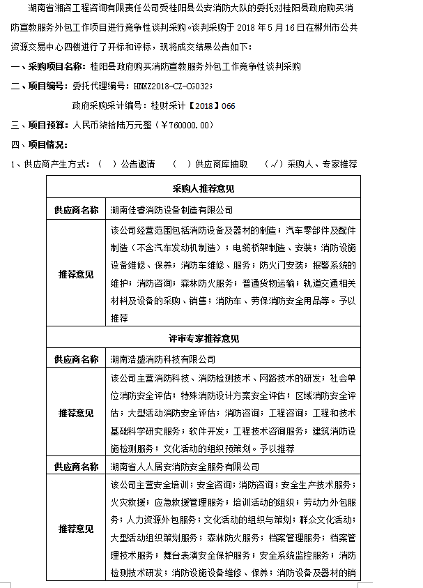 桂陽縣政府購買消防宣教服務(wù)外包工作競爭性談判采購成交公告